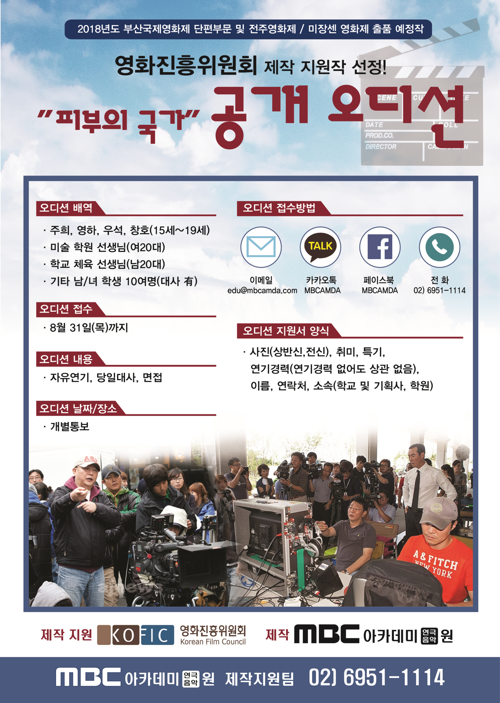 영화 “피부의 국가” 오디션에 대한 자세한 정보는 MBC아카데미연극음악원 강남본원 및 MBC아카데미 광주연기학원을 통해 확인할 수 있다.