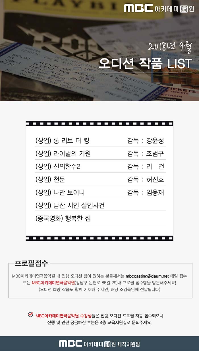 * 9월 오디션 작품 추가 예정입니다.
