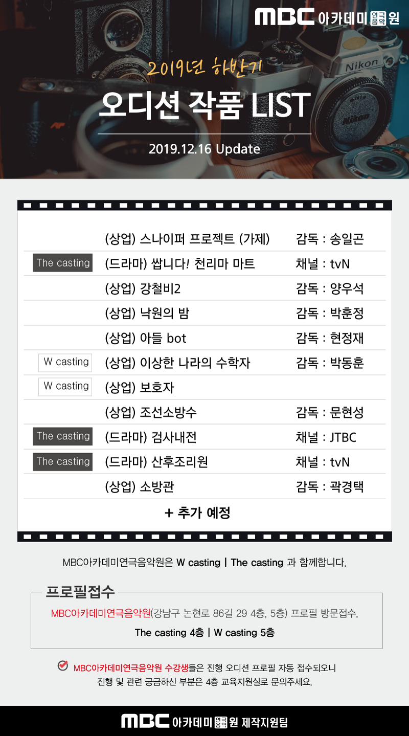 [오디션] 2019년 하반기 상업영화/드라마 오디션 LIST (12.16update)