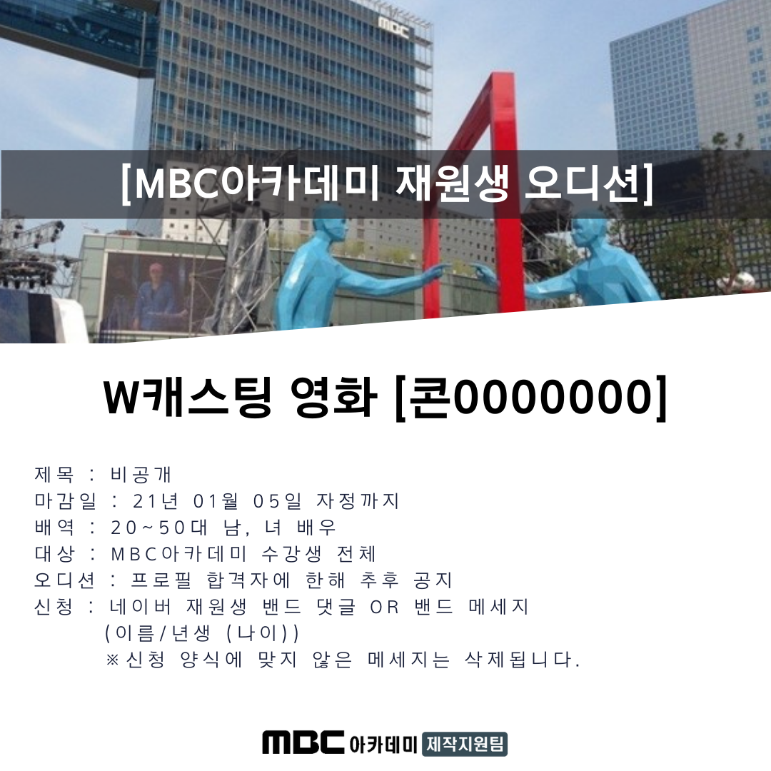 [오디션] W캐스팅 상업영화 [콘0000000] MBC아카데미 재원생 오디션